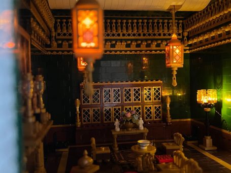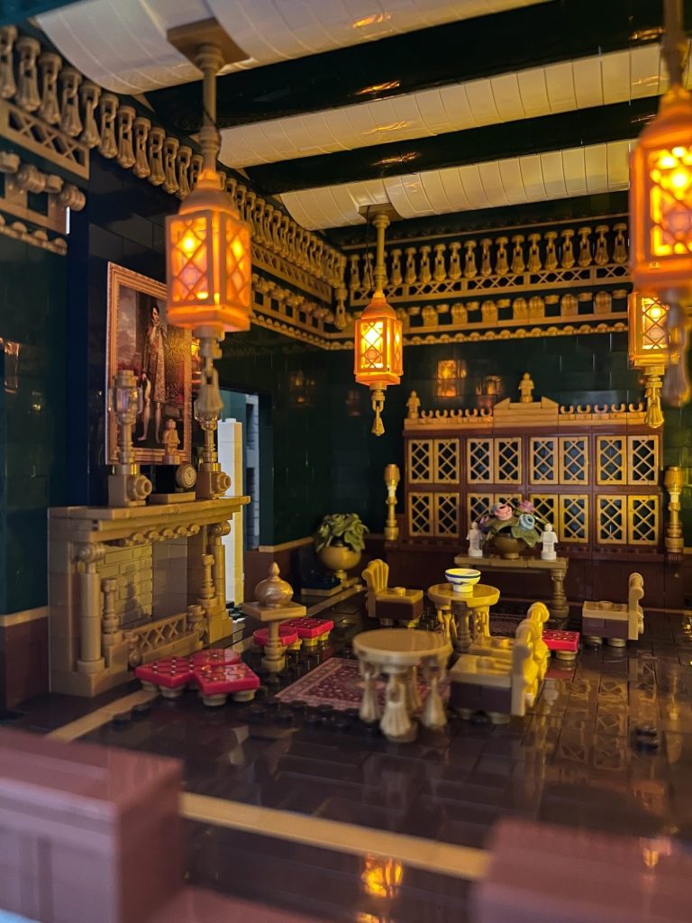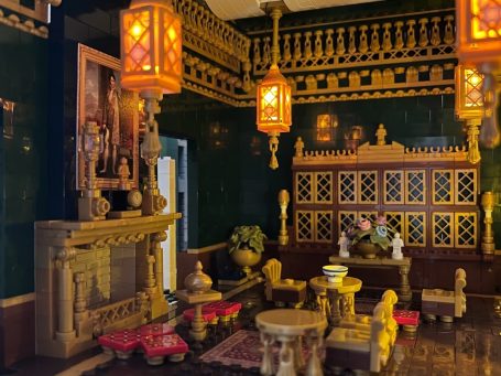 Traveling during the 18th century was only for the rich. Especially traveling to the Middle East. It was very posh to have rooms inspired by your travels because they told you could travel, see all these amazing things and bring them back. As many brought souvenirs, the dukes brought inspiration and build many rooms like this library. Build after a tent, the richness in colors and gold reflect the amazing culture and give a warm feeling in a cold castle.