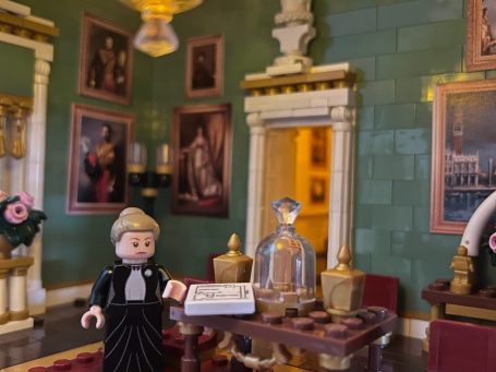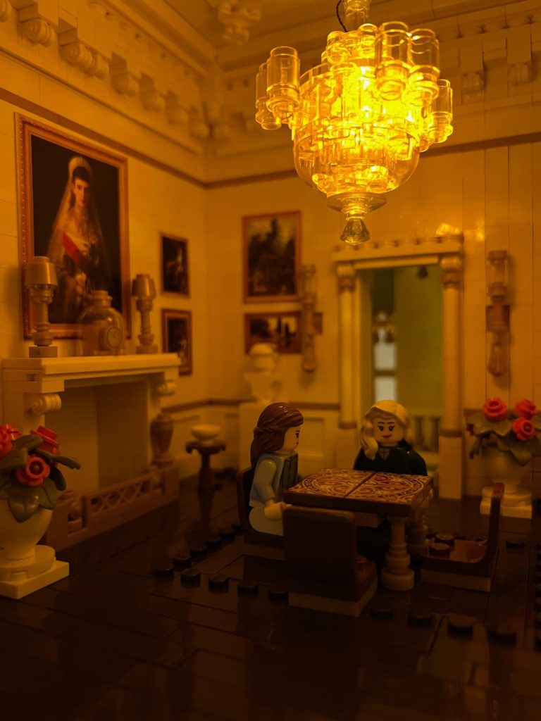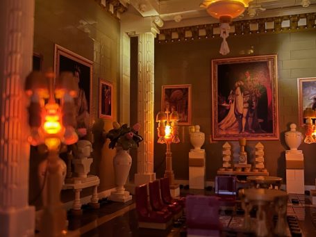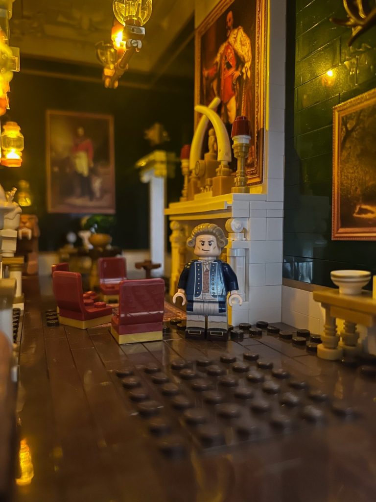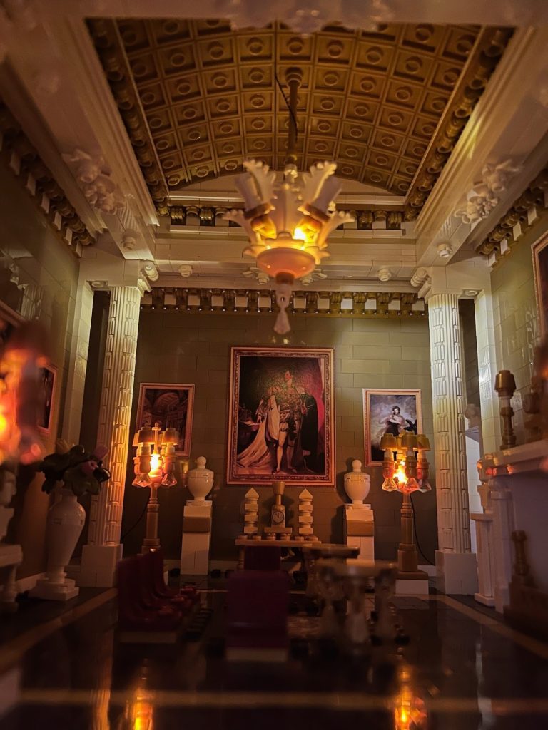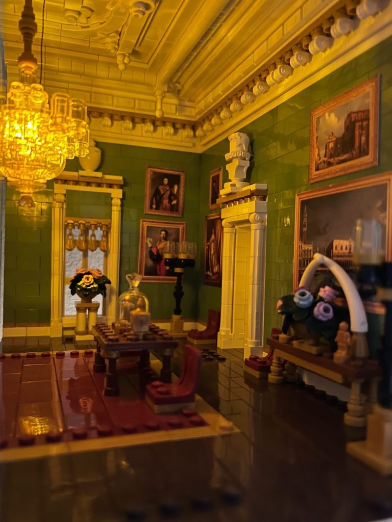 The ballroom was created in 1845 by the 7th Duke of Blockshire. You can see as many details as possible in this room which would impressed the guests. When it is not used for dancing it serves for various purposes. The first part is used as a reception, if one of the Duchesses committee meetings is taking place at the castle for instance. The middle part is then used for seating. The seating can be easily replaced for a large table. The third part is where you can find the gilded desk. Created in 1759 by star furniture maker James Brickson. Now used by the duchess for her correspondence.