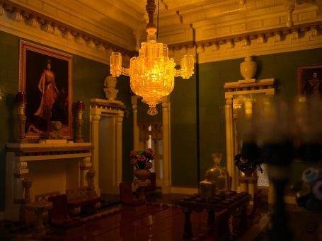 The yellow reception room on the first floor is reached via the Neptune staircase and a smaller stairs from there. It’s the first room of the private apartments of the Cavenbrick family. Here the family receives guests and go to the green drawing room and the Arabian library.