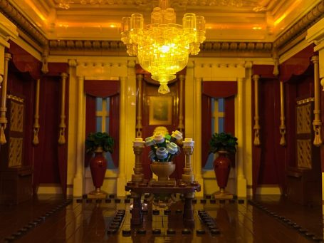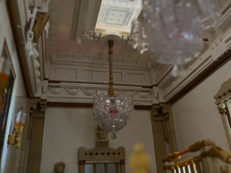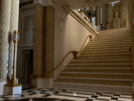 Build in the popular Palladian style, it shows off the wealth and influence of the family living here. White marble sculptures were brought in from Italy during a grand tour and displayed how well traveled they were. A large golden chandelier was created for this room to light up the stunning space. The north wall has 5 windows to get as much light as possible. Opposite you find a gallery which is connected to the central part of the grand staircase. This gives visitors a beautiful view into the vestibule but also lets in natural light for the staircase.
